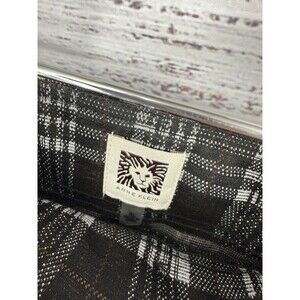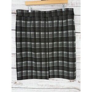 This Anne Klein Ponte Knit Pencil Skirt in size XL features a classic black plaid with a stylish gold buckle mock belt detail. The skirt is made from a comfortable and stretchy fabric that is machine washable, making it perfect for work, business meetings, or travel. The knee-length straight and pencil style skirt is suitable for all seasons and has a versatile design that can be worn in various occasions, reflecting a professional or American city-themed look. Perfect for the career woman or someone looking for a sophisticated and timeless wardrobe staple.