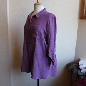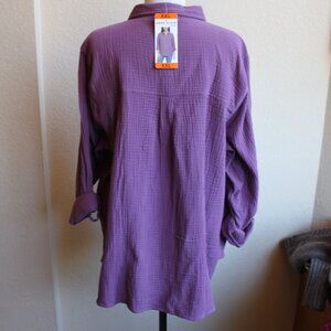 Anne Klein Purple Rolled Sleeve Cotton Textured Shirt Size XXL