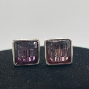 Elegant Anne Klein clip-on earrings featuring a deep purple square stone with a nickel-safe silver-tone backing. Adds sophistication to any outfit.