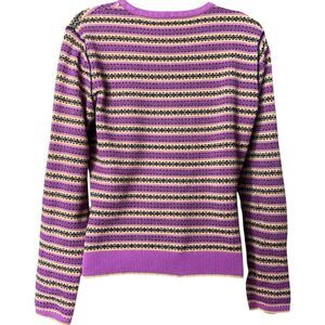 Anne Klein Purple and Yellow Striped Crewneck Sweater Sz M w/ Touch of Sparkle