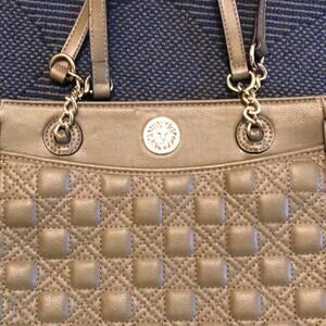 Anne Klein Purse Green and Gold Quilted Pattern Bag