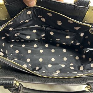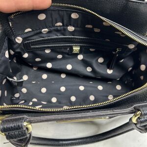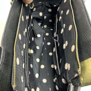 This Anne Klein shoulder bag is a stylish and functional accessory for any woman. The black exterior is made of man-made materials and features a solid pattern, while the gold hardware adds a touch of elegance. The medium-sized bag has a fabric lining with a polka dot pattern, providing a fun contrast to the exterior.