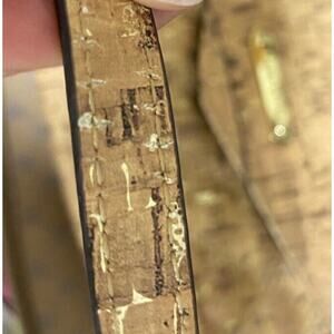 Elevate your style with this gorgeous Anne Klein crossbody purse. The tan color of the exterior cork material is complemented by a black lining and gold hardware. The crossbody strap is made of faux leather and has a snap closure for added security. Perfect for any occasion, this purse is ideal for travel, weddings, parties, casual outings, workwear, and business meetings. It has a small size and is lightweight, making it easy to carry around. The purse features a credit card holder and is lined with fabric. The metallic finish adds a touch of designer charm to the overall look. This Anne Klein purse is a must-have for any fashion-conscious woman.