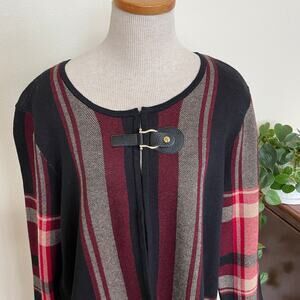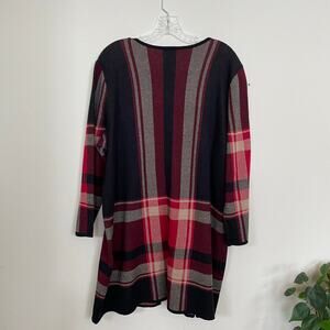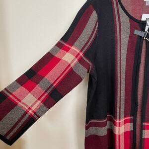 Anne Klein Red Black Plaid Tunic Sweater Toggle Neckline Cozy Layer