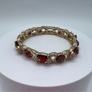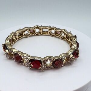 Anne Klein Red Doublet Stretch Bracelet in Gold-Tone NWT MSRP $35
