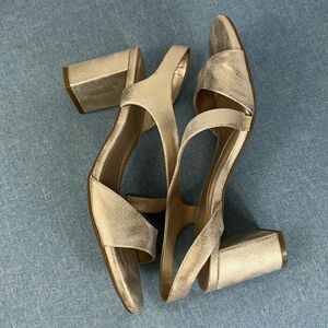 Anne Klein Resley Heeled Round Open Toe Sandals In Gold Size 8.5
