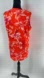 Bright orange sleeveless top with pink and white floral pattern. Perfect for a bold look.