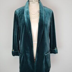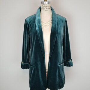 Anne Klein Rich Green Velvet Open Front 3/4 Length Sleeve Blazer * Medium