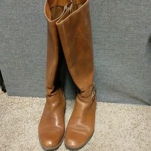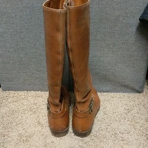 Beautiful Anne Klein riding boots in cognac. Some wear on toes but will look like brand new with a little polish!