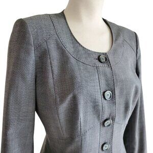 Anne Klein Round Neckline 5 Button Gray Lightweight Wool Blend Skirt Suit Size 2