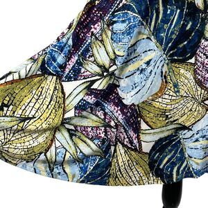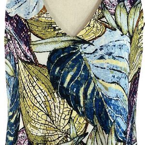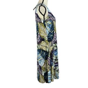 Anne Klein SZ 4 A-Line Dress Sleeveless Stretch V-Neck Leaf Print Lined Multi