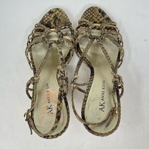 Anne Klein Sandals Womens 8M AK Cameo Animal Print Leather Wedge Heels Strappy. Good pre-owned condition. Spots on wedge and marks on insoles. See pictures for details. See photos for measurements. Ships quickly from smoke-free home.