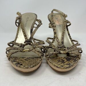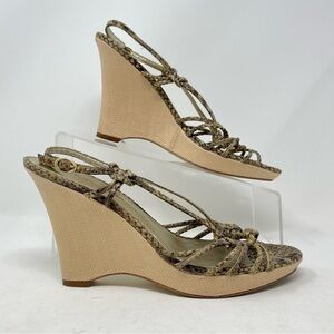 Anne Klein Sandals Womens 8M AK Cameo Animal Print Leather Wedge Heels Strappy