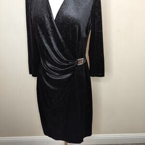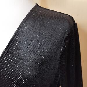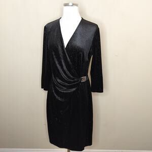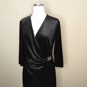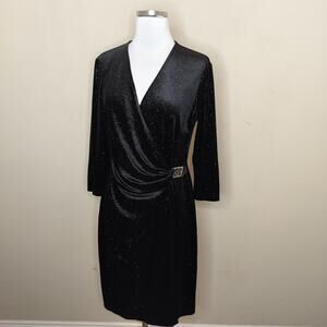 Anne Klein black shimmery paillette sequin faux wrap party dress. Size 10. Poly spandex (22997)