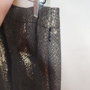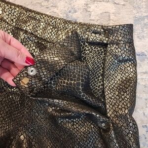 Anne Klein Gold Metallic and Black Snake Skin Pattern Textured Pants.