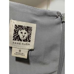 The Anne Klein Shimmering Metallic Gray Twist Front Sheath Dress is a stylish and elegant option for parties and cocktails during the spring and summer seasons. This dress features a V-neckline, sleeveless design, and zip closure, with ruched and glitter accents adding a touch of sparkle. The metallic gray color and sheath style make it a chic choice for any occasion, while the nylon/polyester/elastane material ensures a comfortable and flattering fit. Perfect for size 8 women looking for a sophisticated and versatile dress for various events.