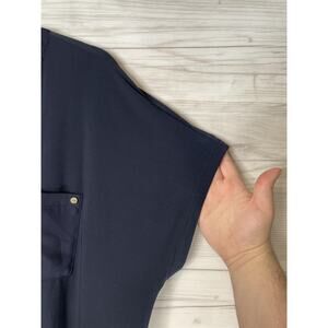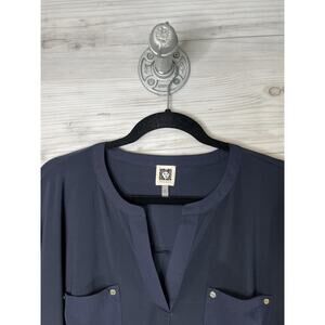 Anne Klein Shirt Womens 2X Navy Split Neck Short Sleeve Pockets Stretch Plus