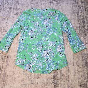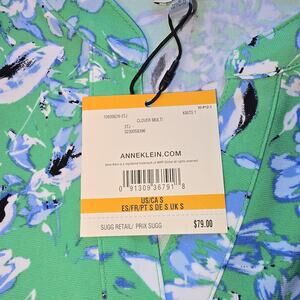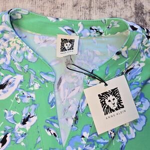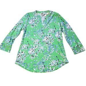 Anne Klein Shirt Womens Small Green Blue Floral Clover Multi Tunic Stretch Top