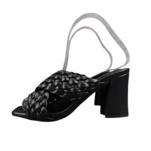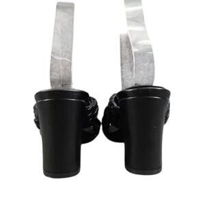Pre-owned Anne Klein Shoes Womens 5 Sandal Mule Slide Pump Woven Straps Block Heel Black