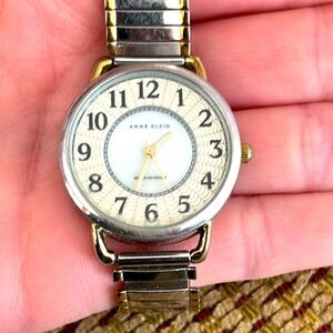 Everyday Wear Function Style Favorite Anne Klein watch! Silver and gold tones. Mother of pearl round face with bold numerals lights up.