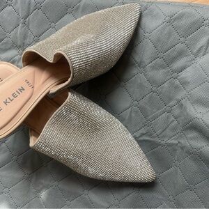 These Anne Klein mules feature a dazzling silver upper with a pointed toe, offering a chic and glamorous look. The slip-on design ensures easy wear, while the flat sole provides comfort for both casual and dressy occasions. Elevate your style with these elegant and versatile shoes.