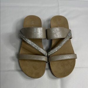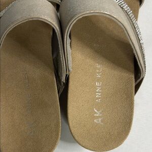 Anne Klein Silver Tan Slip-On Sandals with Metallic Straps