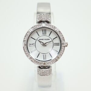 Anne Klein Silver Tone Watch 28mm Round Jewel Bezel Stainless Steel New Battery
