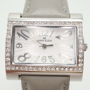Anne Klein Silver Tone Womens Watch 30mm Rectangle Dial Gray Leather New Battery
