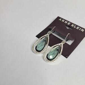Anne Klein Silver-Tone Large Teardrop Crystal Orbital Drop Earrings Blue NEW