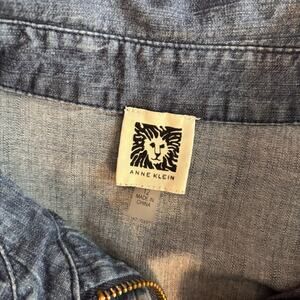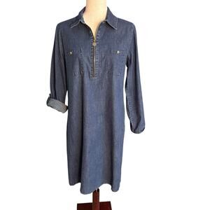 Anne Klein Size 12 Denim LS Shift Tunic Dress Gold Zipper Roll Tab Sleeve