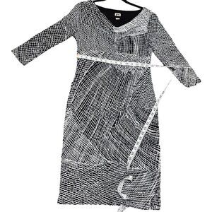 Anne Klein Size 6 Black & White Abstract Print Sheath Dress With Draped Neckline