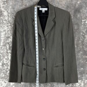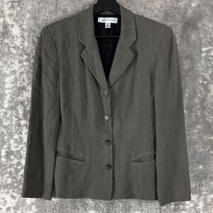 Anne Klein Size 6 Herringbone Notched Blazer Jacket Gray Long Sleeve Lined USA