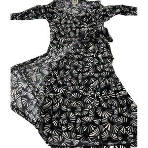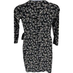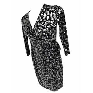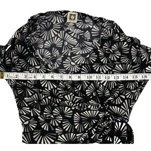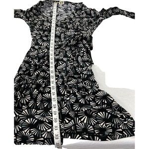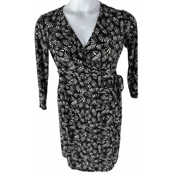 Anne Klein Size Small Black Gray Faux Wrap Dress Geometric Body Con Career
