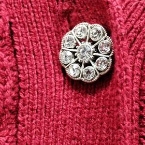 Anne Klein Size XL Red Cable Knit Jeweled Rhinestone Button Up Cardigan Sweater