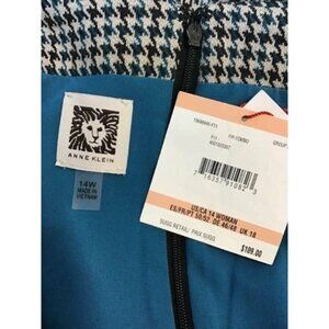 A women's plus size skirt from Anne Klein. The skirt is in black, beige and teal with a houndstooth pattern. The skirt is lined, straight style, back zipper, slit hem, knee length and wear to work. The skirt is new with tags.
