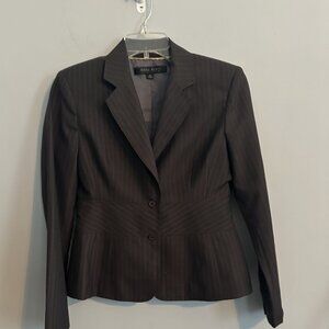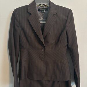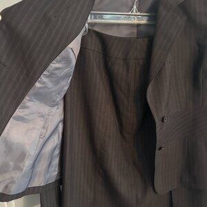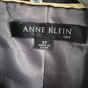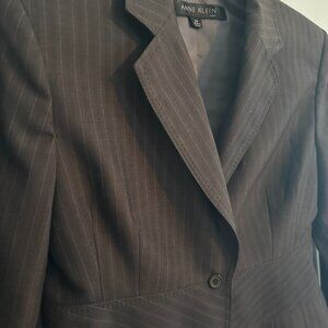 Excellent condition, gently worn condition. The suit includes a skirt and a single-breasted jacket with two-button front button style. The suit is designed with a classic fit and is lined. Give your power wardrobe a polished update with this Anne Klein Women's Wool Blend Career Skirt Suit in Gray Pinstripe. Designed with timeless tailoring this blazer adds a sophisticated edge to your office look or smart-casual fit. This is a classic 2-piece formal/workwear attire for women. The structured silhouette flatters your shape while keeping things light —perfect for layering year-round. The wool blend material makes it suitable for winter, summer, fall, and spring.