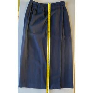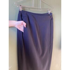 Anne Klein Skirt Suit Womens 10/14 Vintage 100% Wool Navy Blue Pencil Wrap Midi