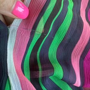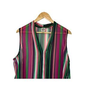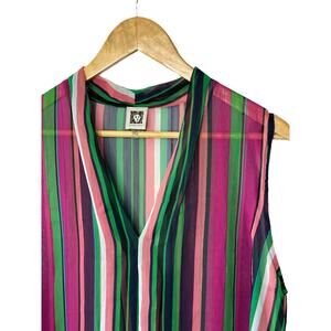 Anne Klein Sleeveless Sheer Multi-Color Stripe V Neck Tunic Blouse Women's 16