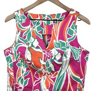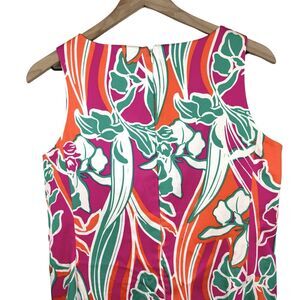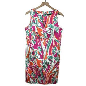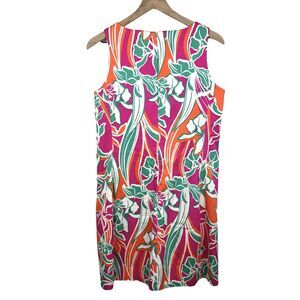 Anne Klein Sleeveless Shift Dress 8 Tropical Flowers Bright Orange Pink Pocket