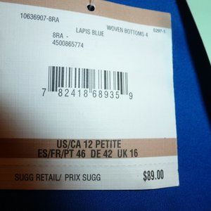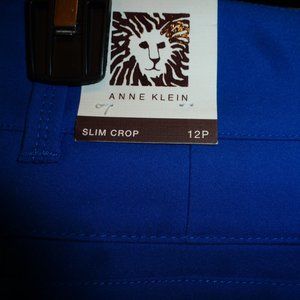 Anne Klein Slim Crop Petite Lapis Blue Woven Bottoms NEW with a price tag