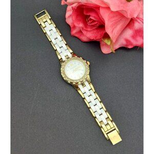 Anne Klein Small Wrist Watch Gold Tone & White Link 6" Working