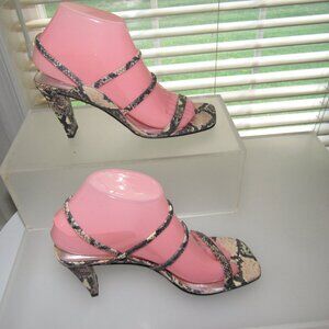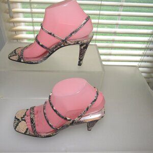 Anne Klein Snakeskin-Print Square-Toe Slingback Sandals Heels 7.5 M | Y2K Glam