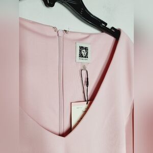 Anne Klein Soft Pink Midi Dress with Flutter Sleeves, Size 10