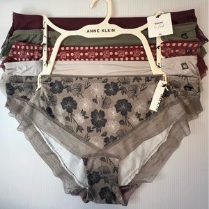 Anne Klein Stretch and Soft w/Fine Lace Embellishment 5 pc Underwear set -combination of solid and print - stretch superfine lace band at leg opening