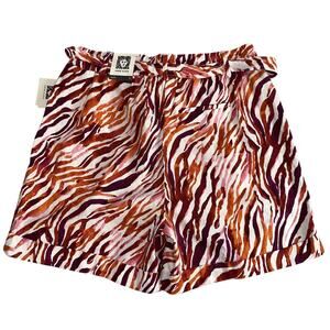 Anne Klein Spicy Orange Multicolor Linen Zebra Print Pockets Shorts Medium New