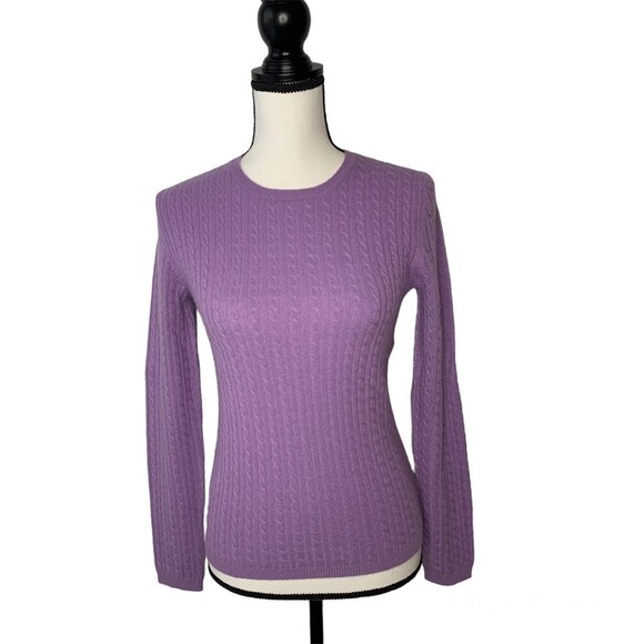 Anne Klein Sport Women S 100% Cashmere Lilac Purple Cable Knit Crew Neck Sweater
