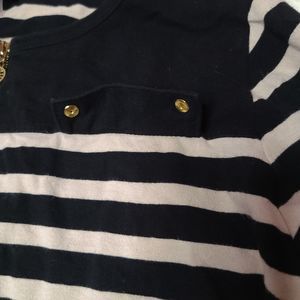 Anne Klein Sport stripe sweater 3/4 sleeve in size 1x. Faux pockets as shown in the photo. Can be zipped up for church wear, or unzipped when you are feeling saucy.