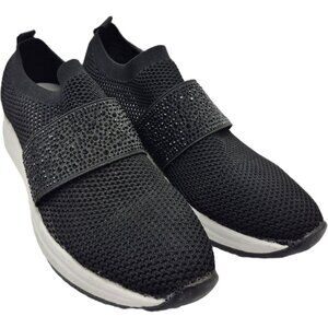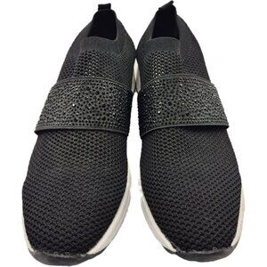 Anne Klein Sport AK-Bask Black Slip-On Sock Sneakers AK Rhinestone Details Women's 8.5M