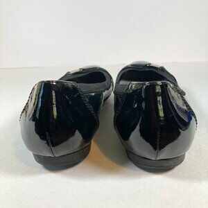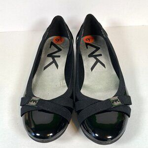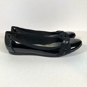 Anne Klein Sport Black Patent Flats, Size 9.5, Slip-On Toe Strap w Logo Classic