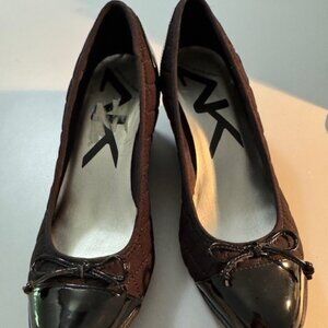 Anne Klein Sport Black Patent Leather and Quilted Wedge Pump Size 8M